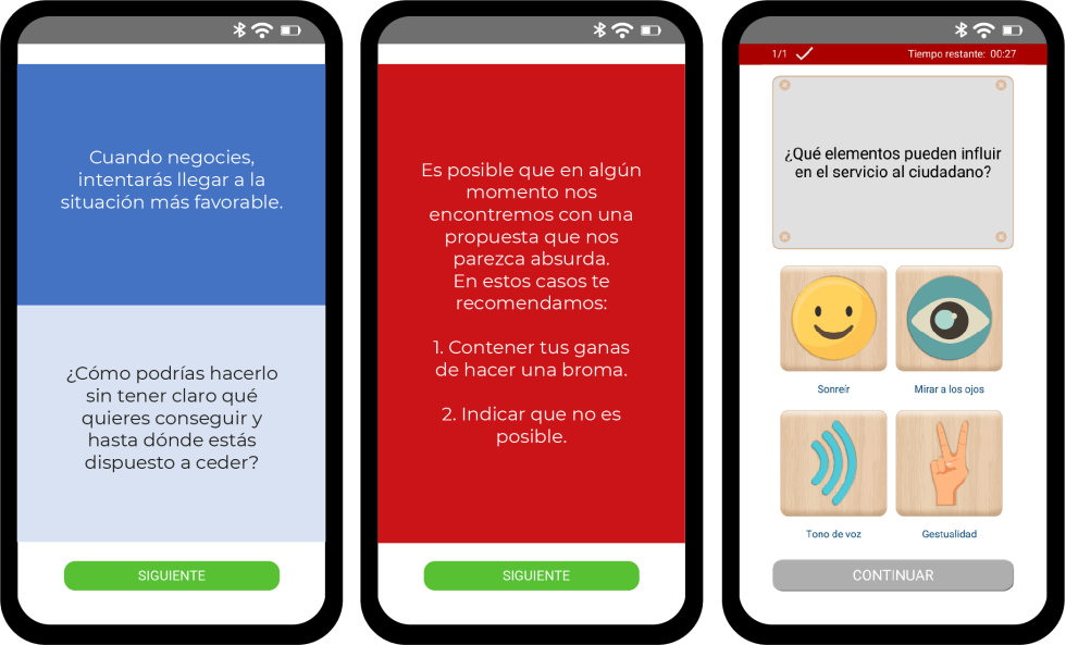 - desafíos de aprendizaje a través de sistemas de preguntas y respuestas, en un formato muy visual, de alto impacto y atractivo para el usuario. Reforzando los conocimientos principales y asegurando el aprendizaje a través de sistemas de refuerzo y evaluación
